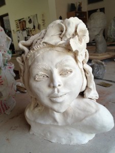I sculpted my clay into a woman.  She dried in the air before being baked in the kiln’s fire.  Pleased she emerged intact, Michelle, my teacher and I discussed many, many options for the finishing touch – color.