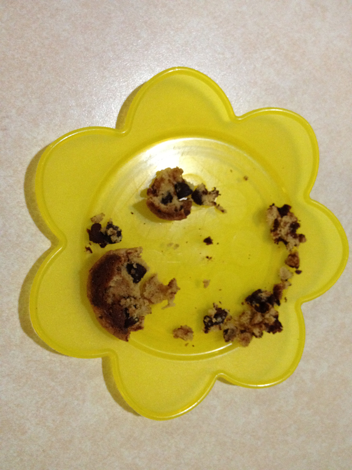 I showed him the yellow plate and said “You ate your cookies. The evidence was sitting right here when I came home.”