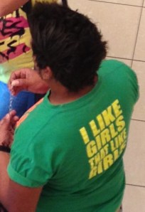 His shirt said “I Like Girls Who Like Girls” – on both sides.