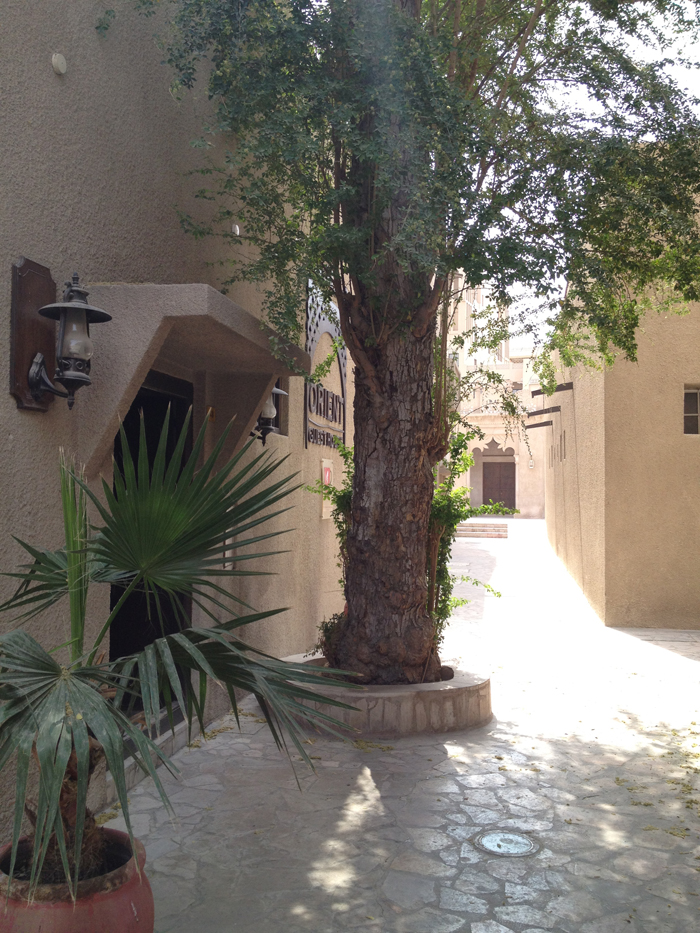After years of going to Dubai for “events” and shopping, during my artist sister and mother’s visit, I finally went against traffic and followed Sheik Zayed Road to its origin at the Dubai Creek. Two-story floating palaces anchored along the corniche’s edge reminded me of the Nile River cruisers. Reaching the water, our taxi turned left and followed the Al Seef Road to its end at the wrought iron gates of the Ruler’s Court.