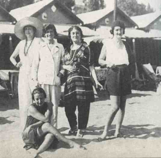 Misia (striped robe) with Coco Chanel (white pantsuit) 1923 in Venice